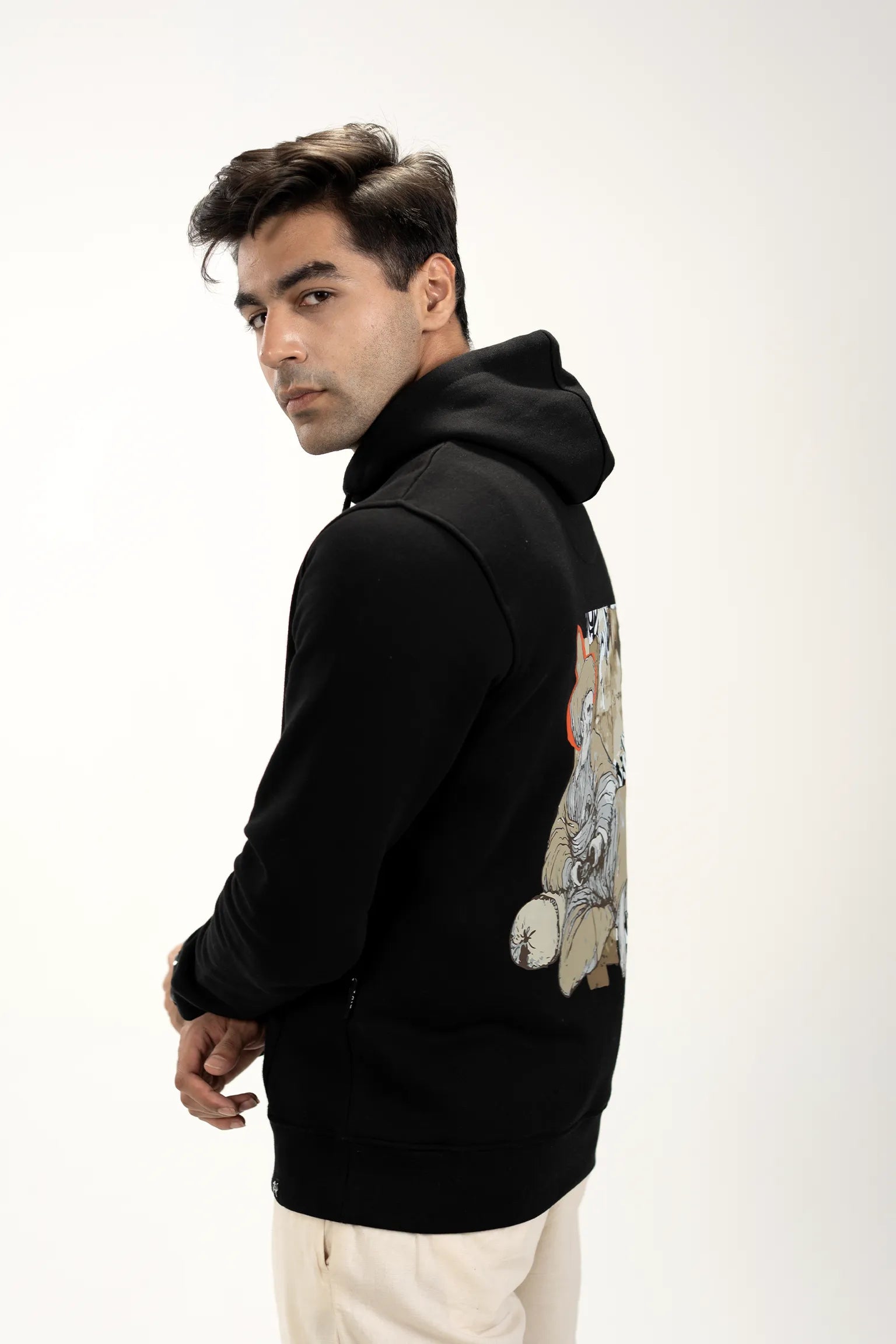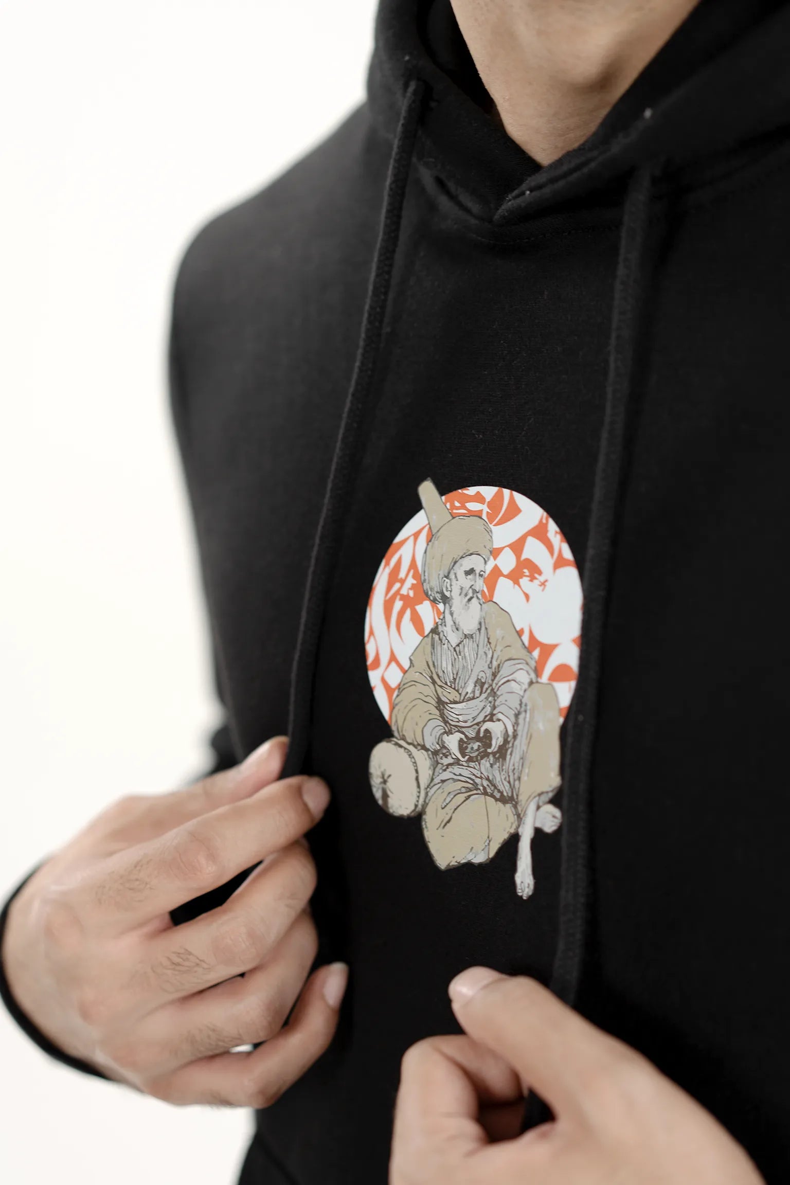 A sleek black hoodie with Crimson Sage artwork that combines streetwear minimalism with eye-catching design. Ideal urban statement piece.
